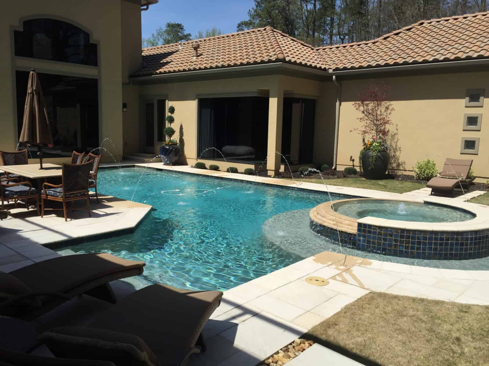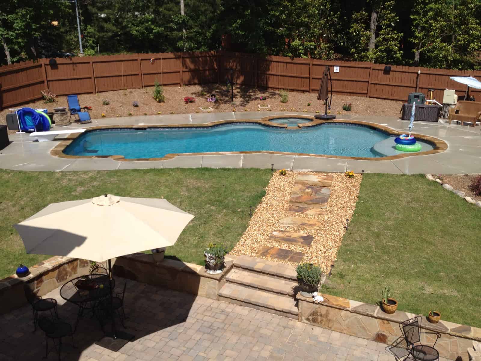 Our masterful designers can create a poolscape specifically tailored to your backyard, style preferences, and family needs. From modest to extravagant, this collection of swimming pool photos represents a small sample of our completed pool designs.